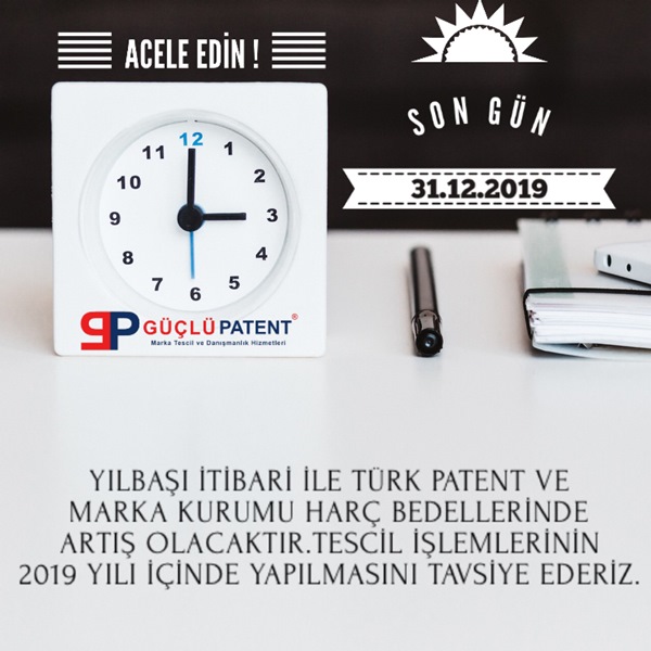 01.01.2020 TARİHİ İTİBARİ İLE TESCİL HARÇ ÜCRETLERİNDE ARTIŞ OLACAKTIR.